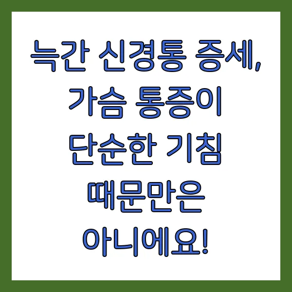 이 부분은 정말 많은 분들이 걱정하시는 부분인데요, 늑간 신경통 증세 는 가슴 통증을 유발하지만 심장마비 증상과는 다르답니다. 하지만 증상이 비슷할 수 있기 때문에, 갑작스럽고 심한 가슴 통증, 호흡 곤란, 식은땀, 팔이나 턱으로 퍼지는 통증 등이 동반된다면 즉시 응급실로 가셔야 해요. 스스로 판단하기보다는 전문가의 진단을 받는 것이 가장 안전하답니다.